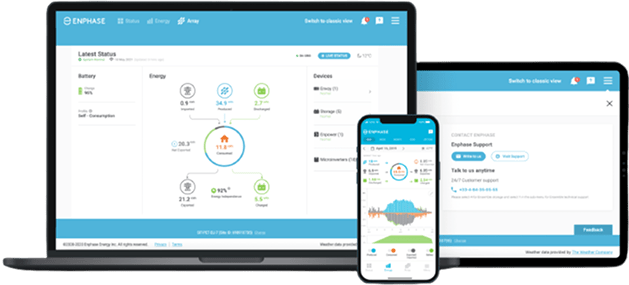 Enphase micro inverters provide the ability to monitor every solar panel independently to ensure each solar panel is working to its maximum potential. With the Enphase app, Enlighten, you can track how much power you’re making, and home energy consumption to see how much solar energy you are producing and how much you are saving.